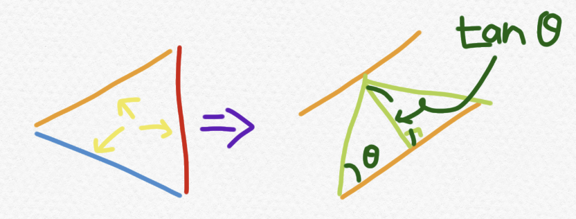 고등학교 수학에서 나오는 삼각형의 높이를 구하는 공식을 이용하면 된다.